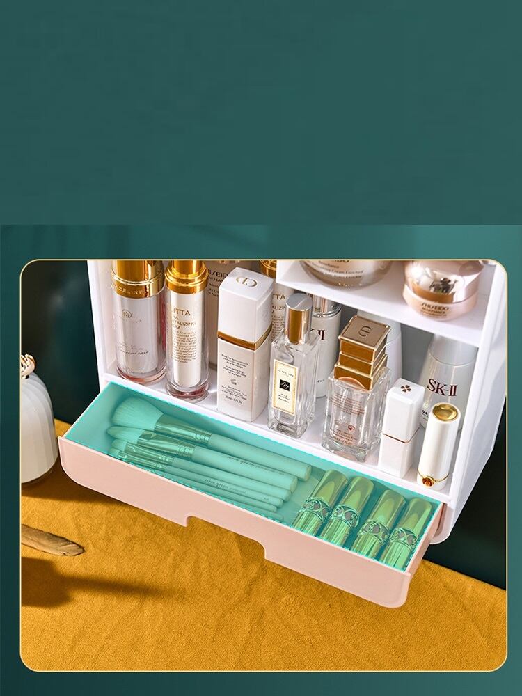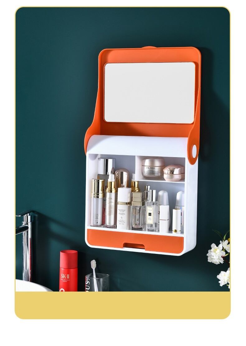 ミラー付き 化粧品収納ボックス 壁掛け 家庭用 大容量 一体型 防水スキンケア 商品ラック